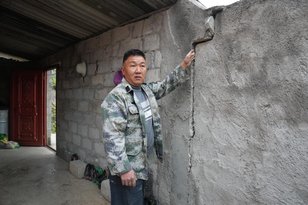 记者来到本次地震的震中——巧家县包谷垴乡,在红石岩村营盘社,村民赵坤云正在检查自家房屋,回忆起19日晚的地震,他仍心有余悸:“震感很强,我当时在刷手机,突然觉得很晃,就叫一家人赶紧跑出屋了。”