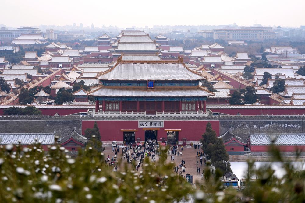 这是1月18日在北京景山公园拍摄的故宫雪景。新华社记者 谢晗 摄