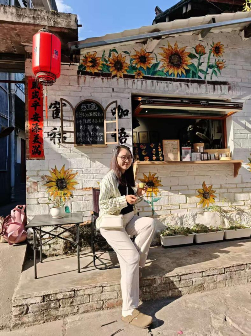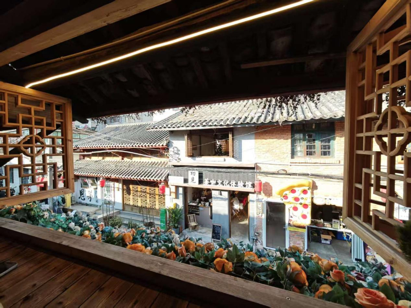 图为游客在普洱市思茅老街咖啡与民宿融合店前打卡拍照。 新华网程浩然摄