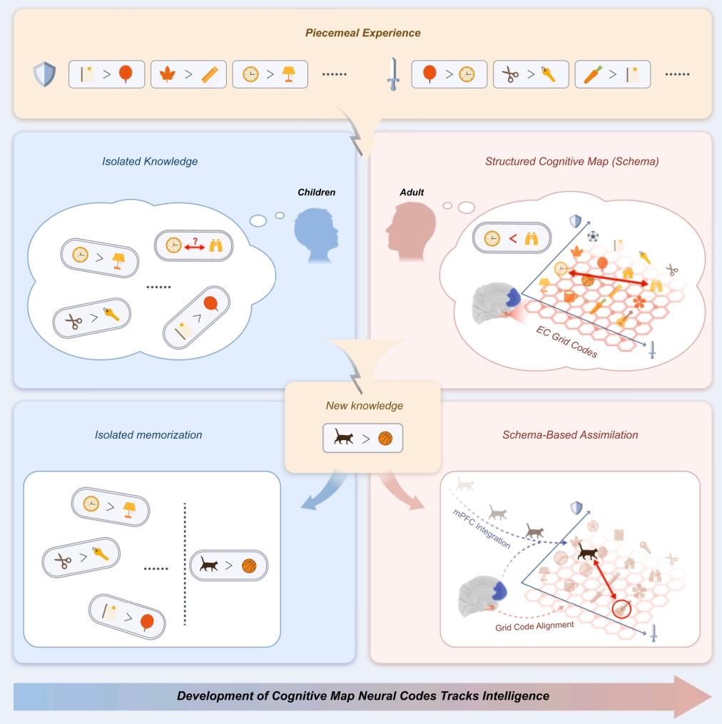 过去,有心理学家提出,儿童认知发展的关键,不在于往脑子里装了多少知识,而是要看能否将零散的经验和知识拼接、贯通,形成可以迁移使用的思维框架。但这一说法长期缺乏直接的大脑神经证据。