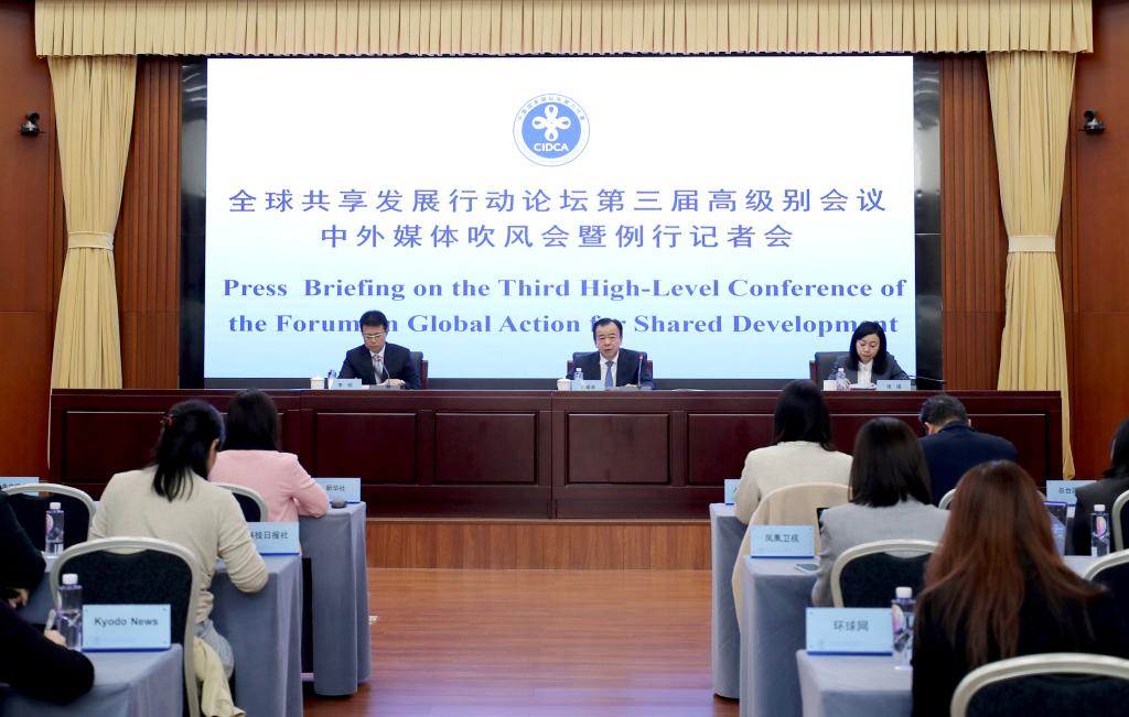 4月14日,国家国际发展合作署在北京举行全球共享发展行动论坛第三届高级别会议中外媒体吹风会暨例行记者会。记者从会上获悉,全球共享发展行动论坛第三届高级别会议将于4月21日至22日在北京举行。新华社记者 李旭伦 摄