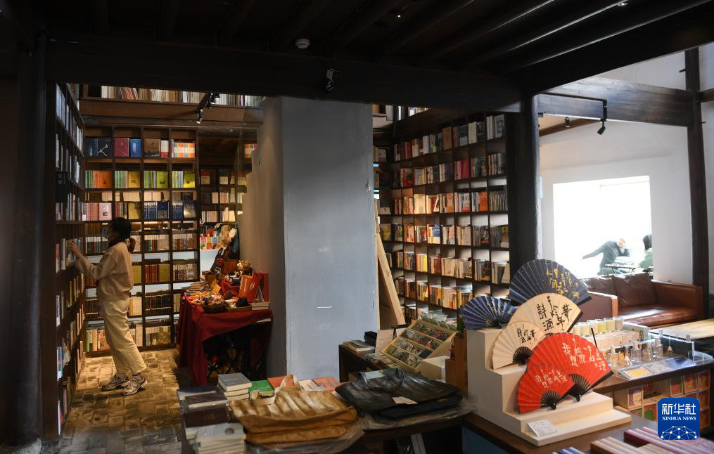 游客在浙江省丽水市松阳县陈家铺村一家书店休憩(2024年1月30日摄)。新华社记者 翁忻旸 摄