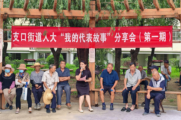 ▲宿迁市宿城区人大代表蔡琳回选区开展“我的代表故事”分享会活动,向选区选民报告履职情况。