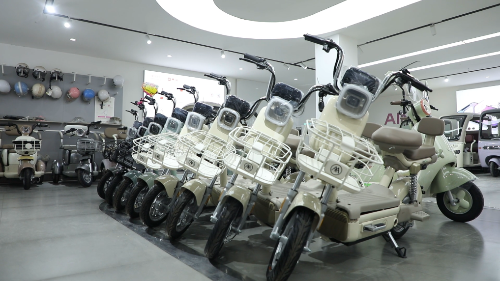 12月1日,河北省馆陶县某电动自行车零售店内,多款产品整齐陈列。新华社记者 张玮华 摄