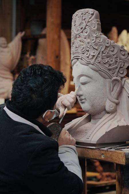 宝顶老街的石雕匠人。2021年5月,“大足石雕”被列入第五批国家级非物质文化遗产代表性项目名录。朱伟/摄